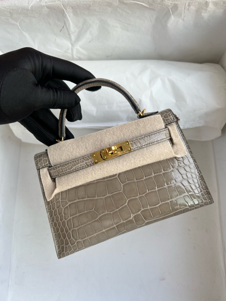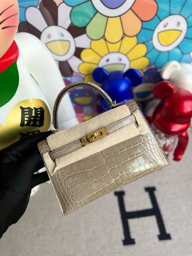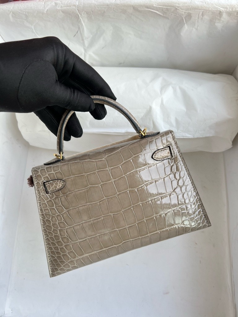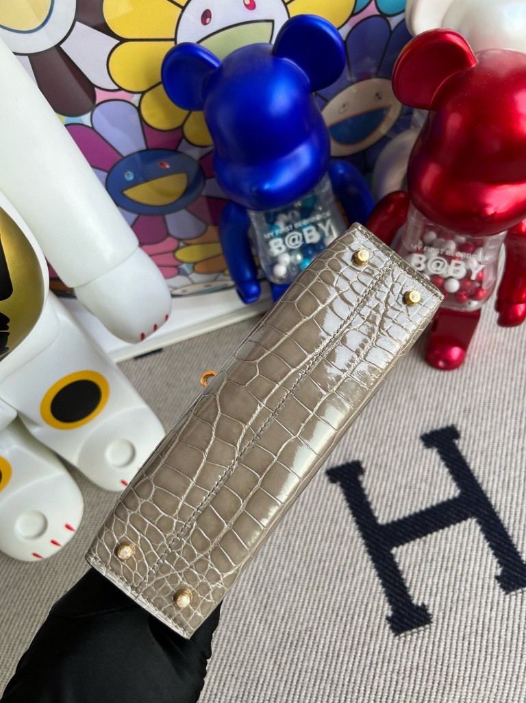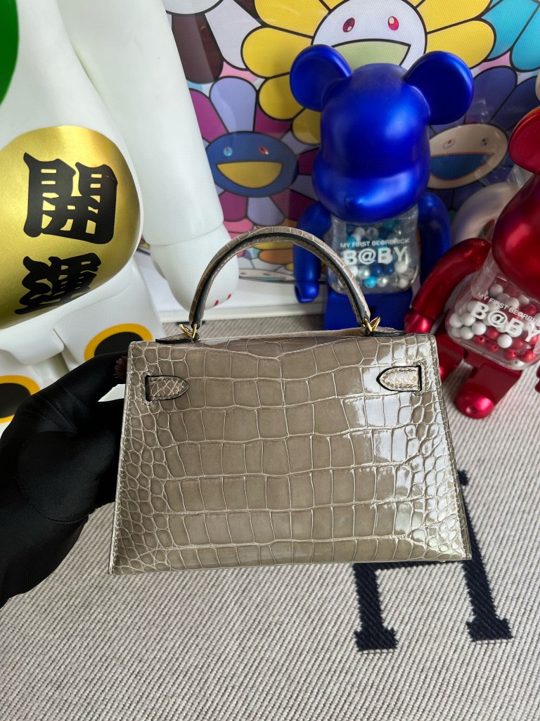 Mini kelly ll Alligator shiny ck81 gris T Gold Hardware 19cm Full Handmade