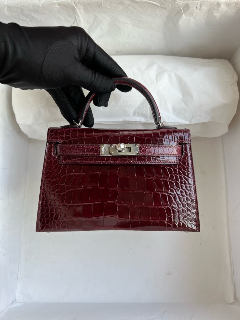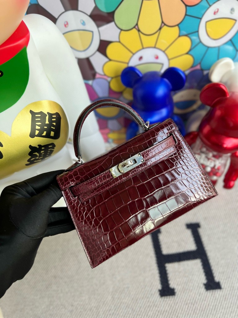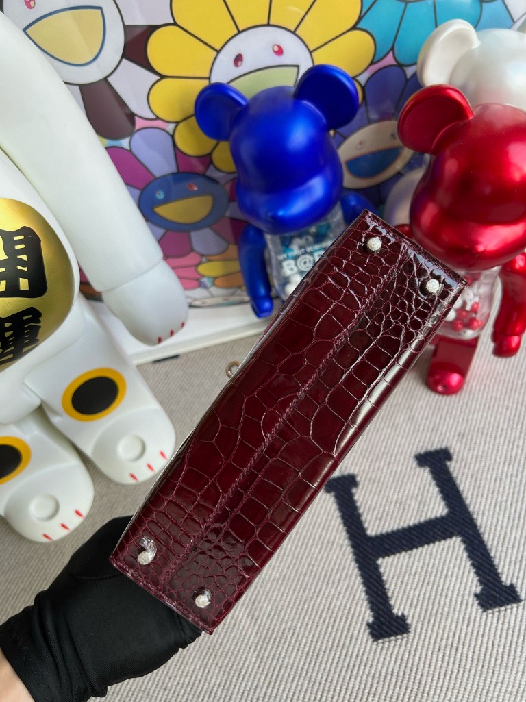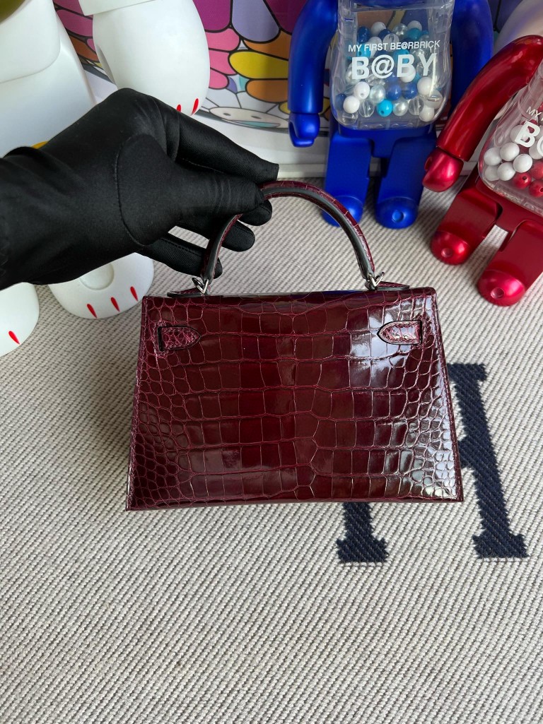Uncle Bench Hermes Mini kelly ll Alligator shiny F5 Wire red Silver Hardware 19cm Full Handmade