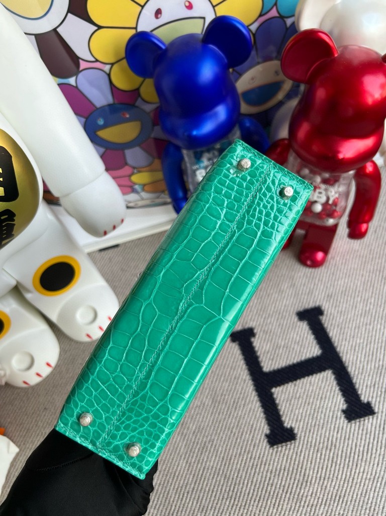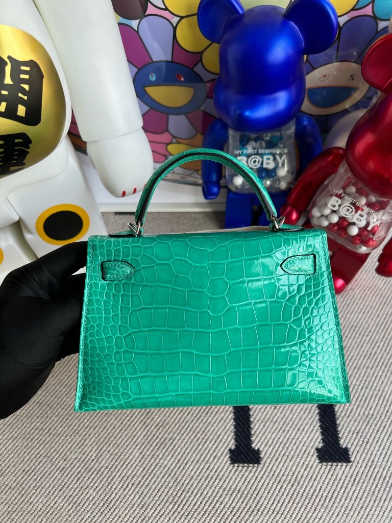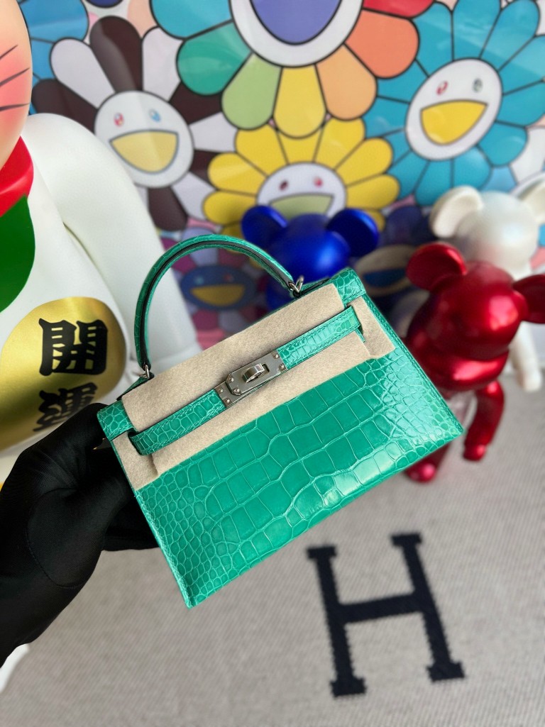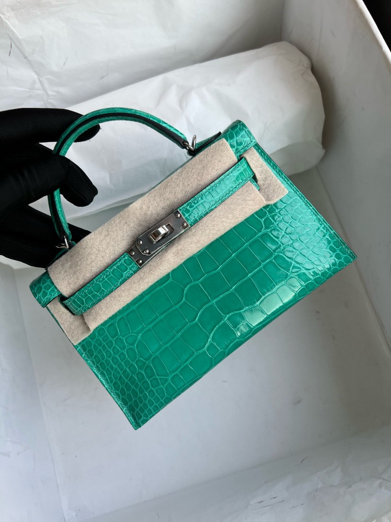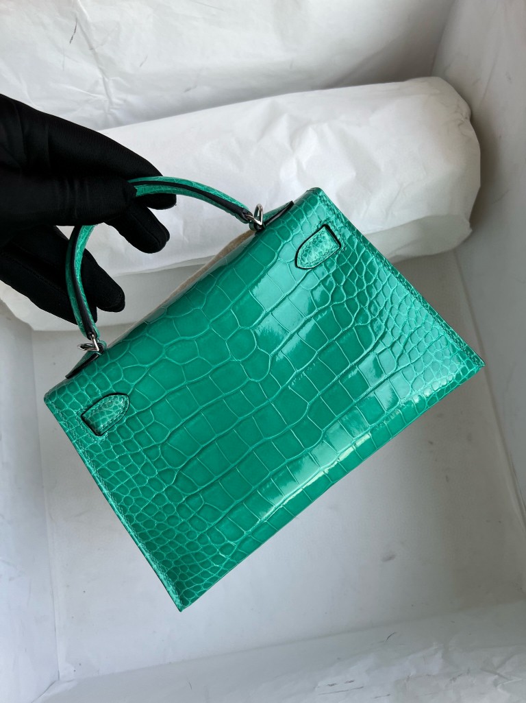 Mini kelly ll Alligator shiny Mint green Silver Hardware 19cm Full Handmade