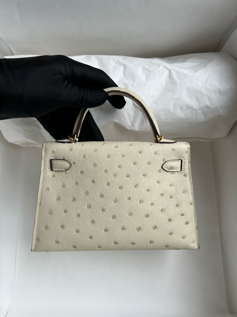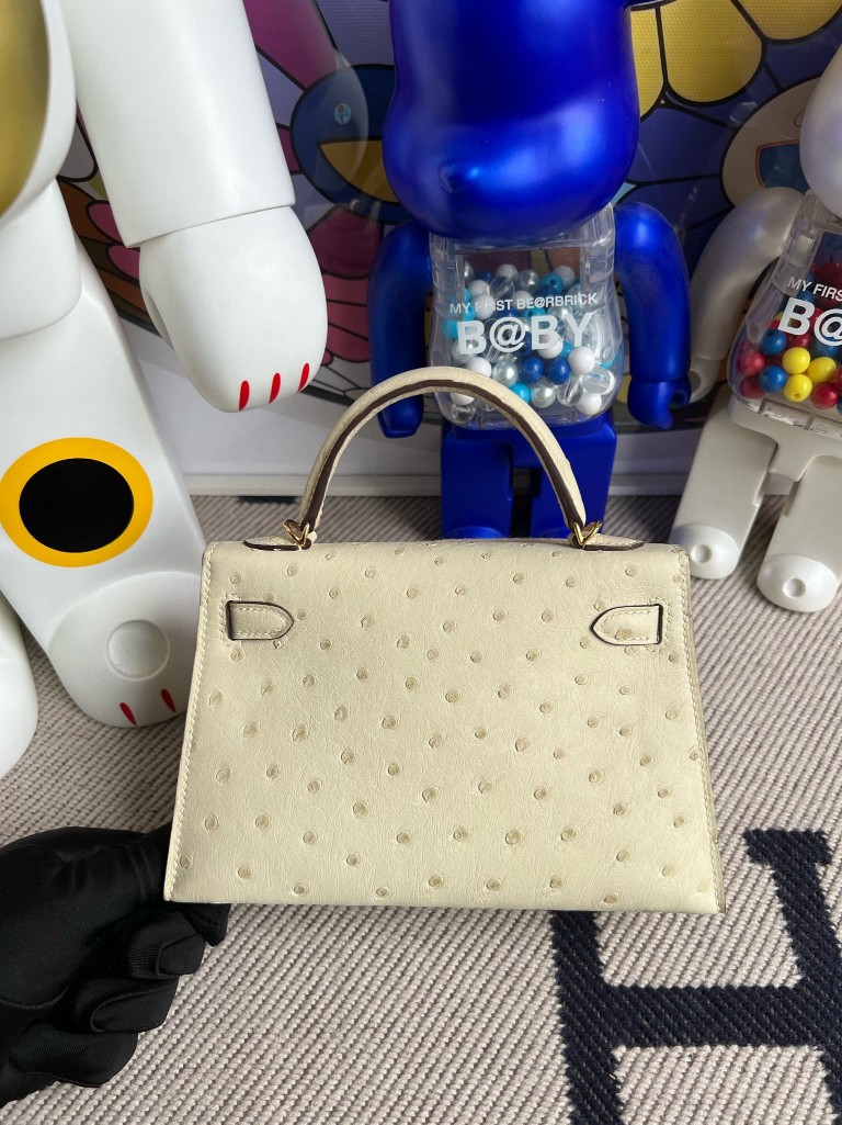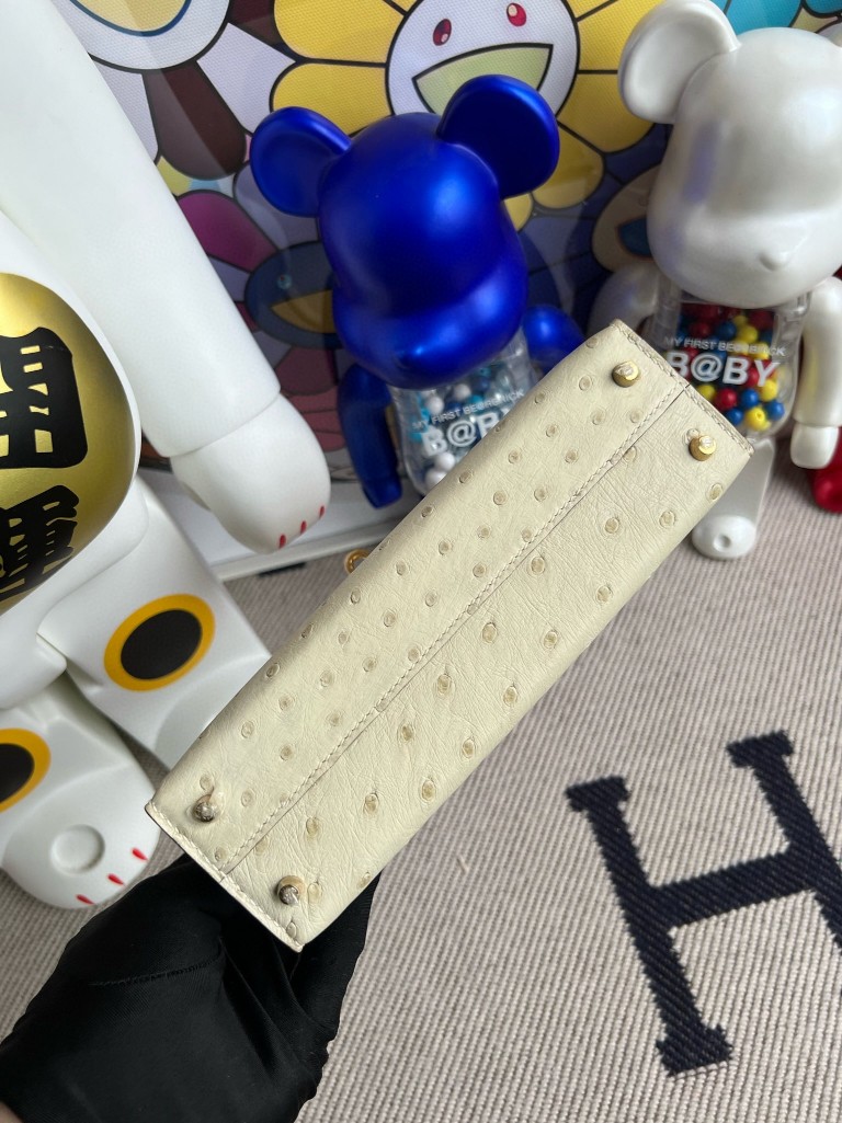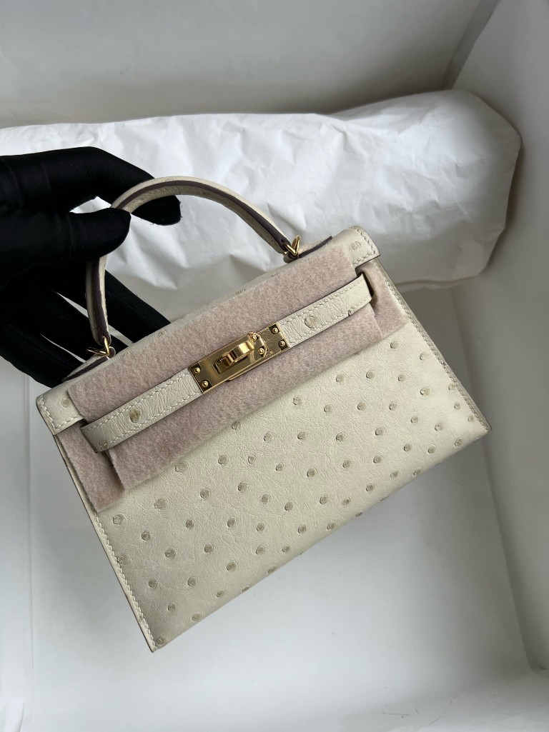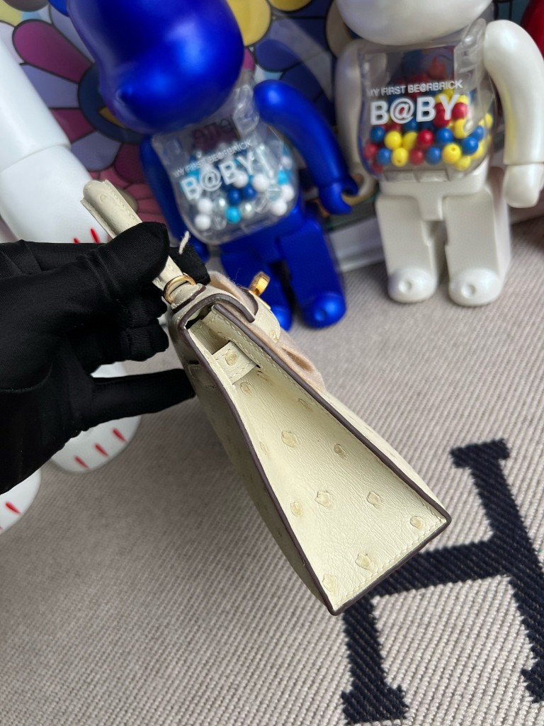 Mini kelly ll Ostrich kk 3C White wool Gold Hardware 19cm Full Handmade
