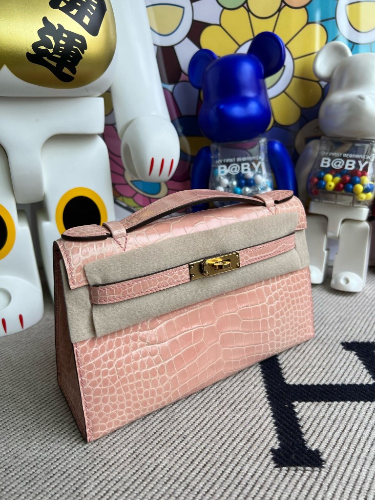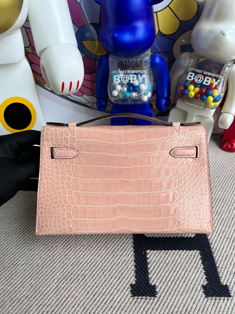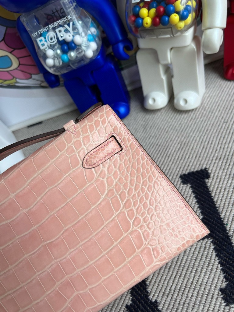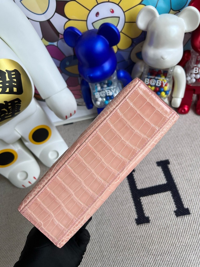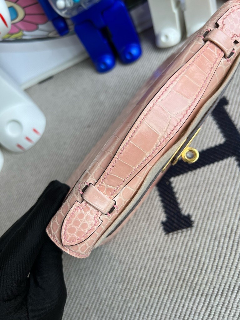Mini kelly pochette Alligator shiny p1 Rose Pink Gold Hardware 22cm Full Handmade