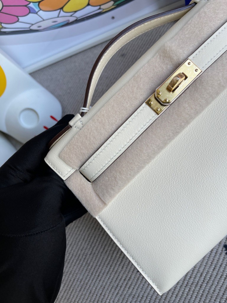 Mini kelly pochette swift 8L Beton Gold Hardware 22cm Full Handmade