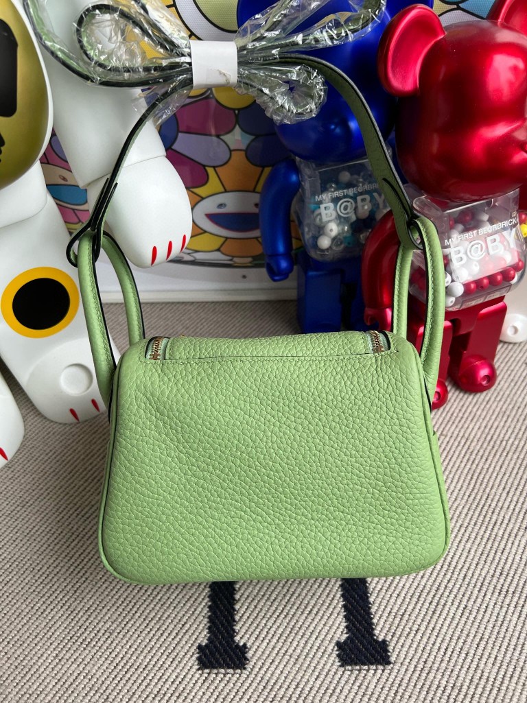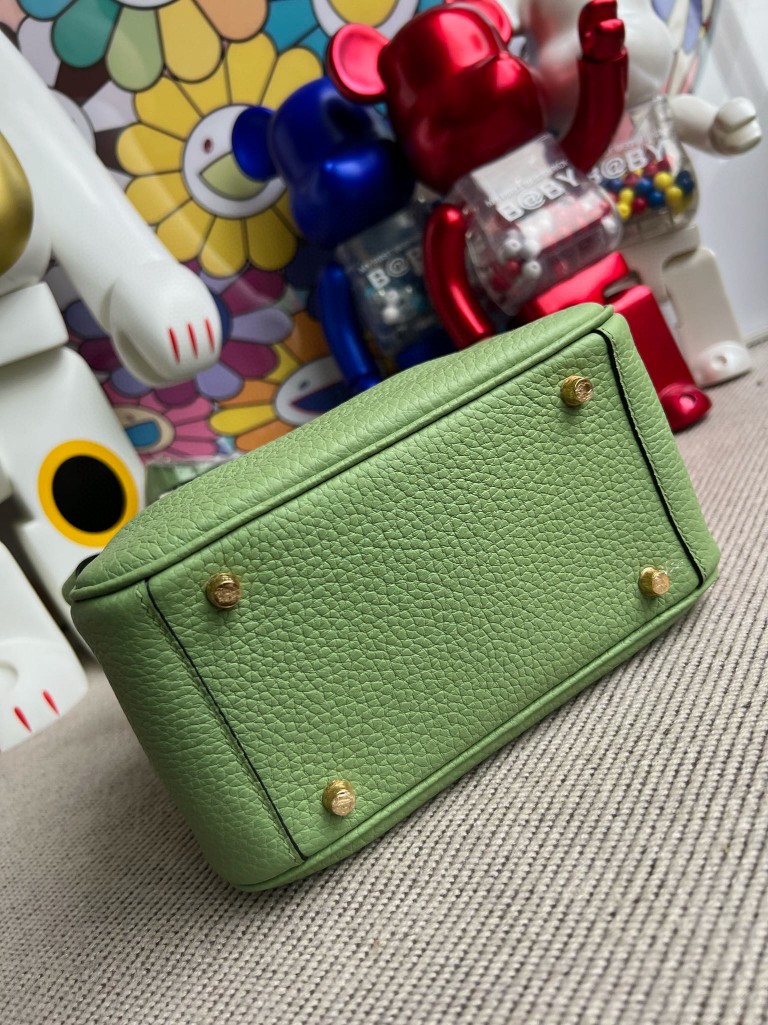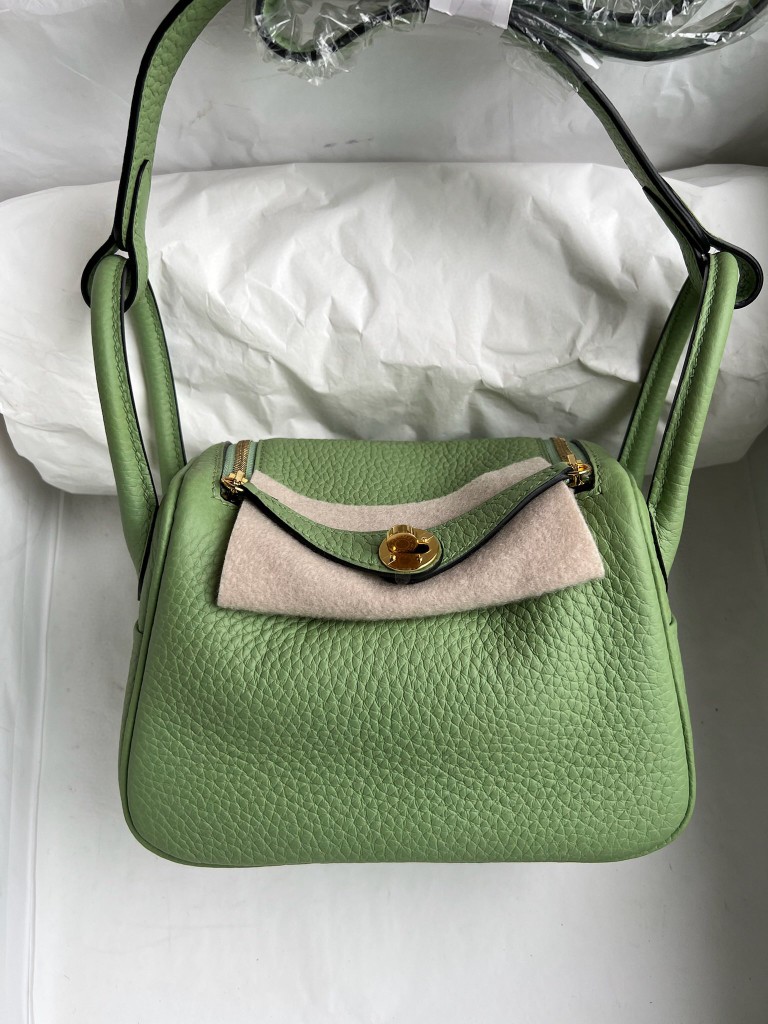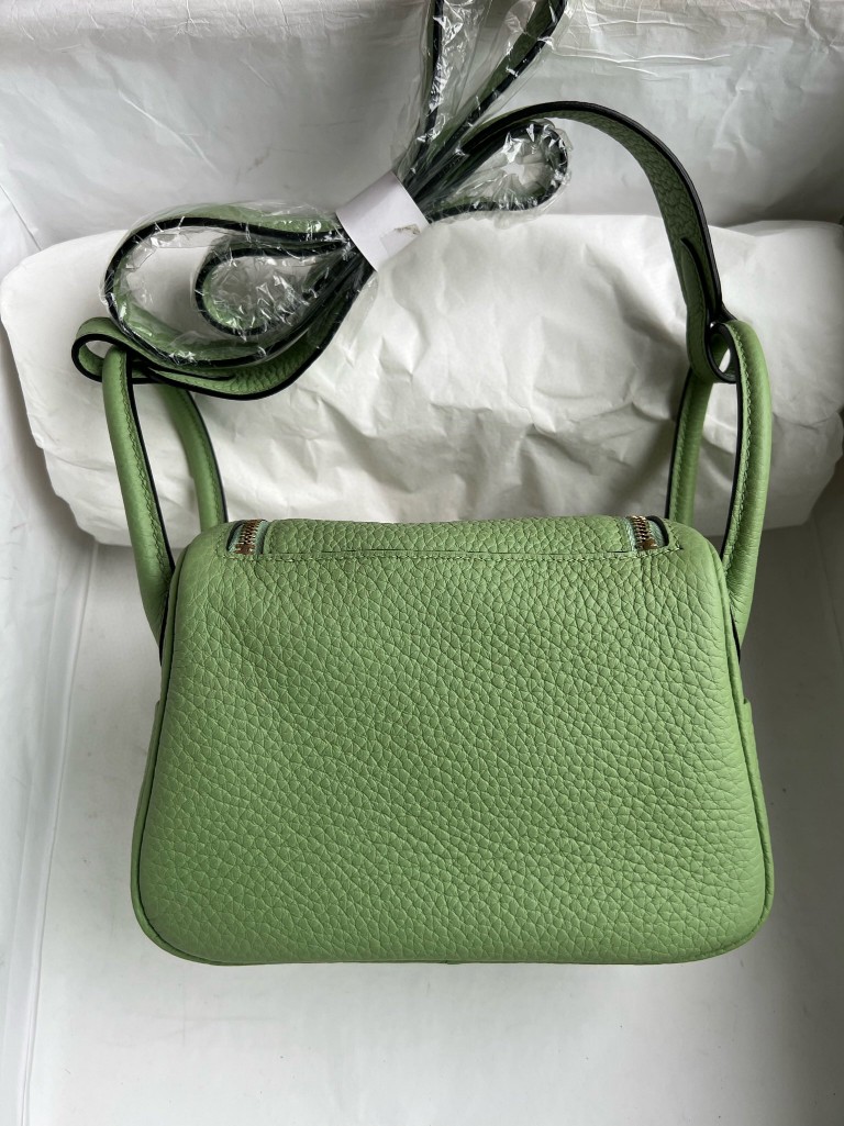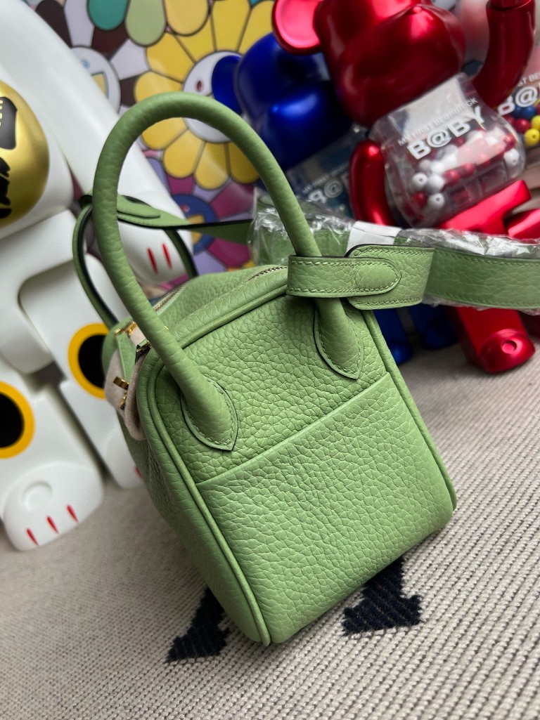 Uncle Bench Hermes Mini lindy Taurillon Clemence 3I Avocado green Gold Hardware 20cm Full Handmade