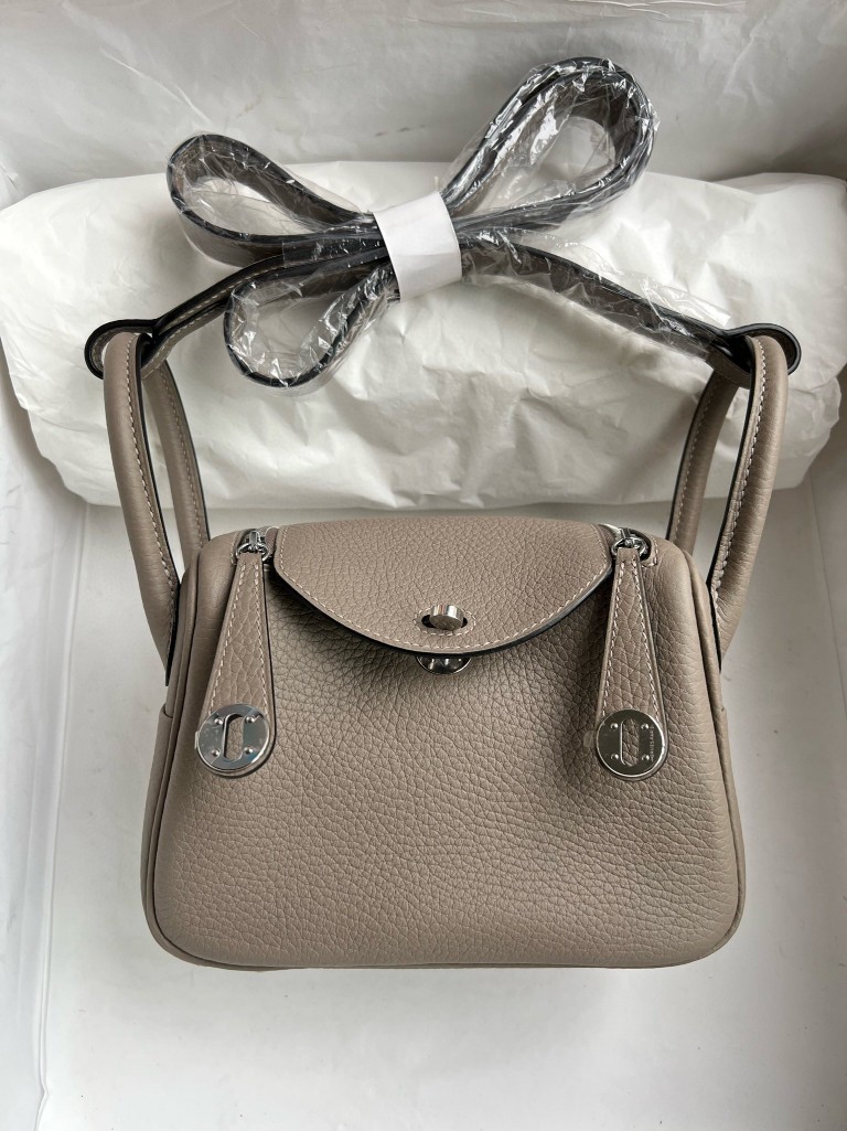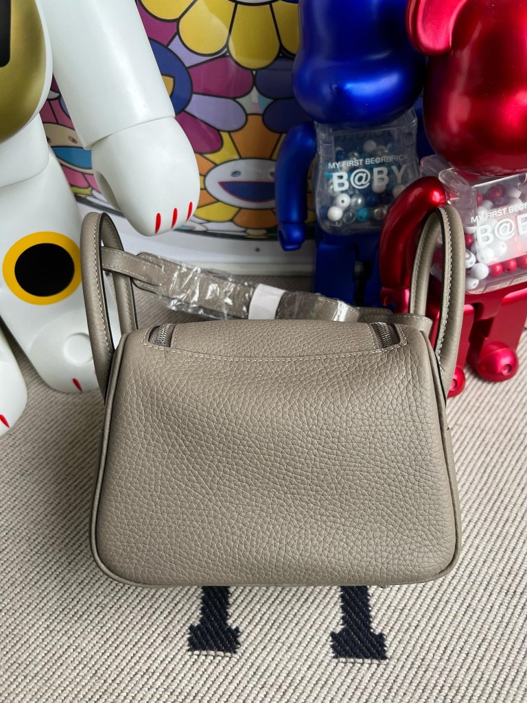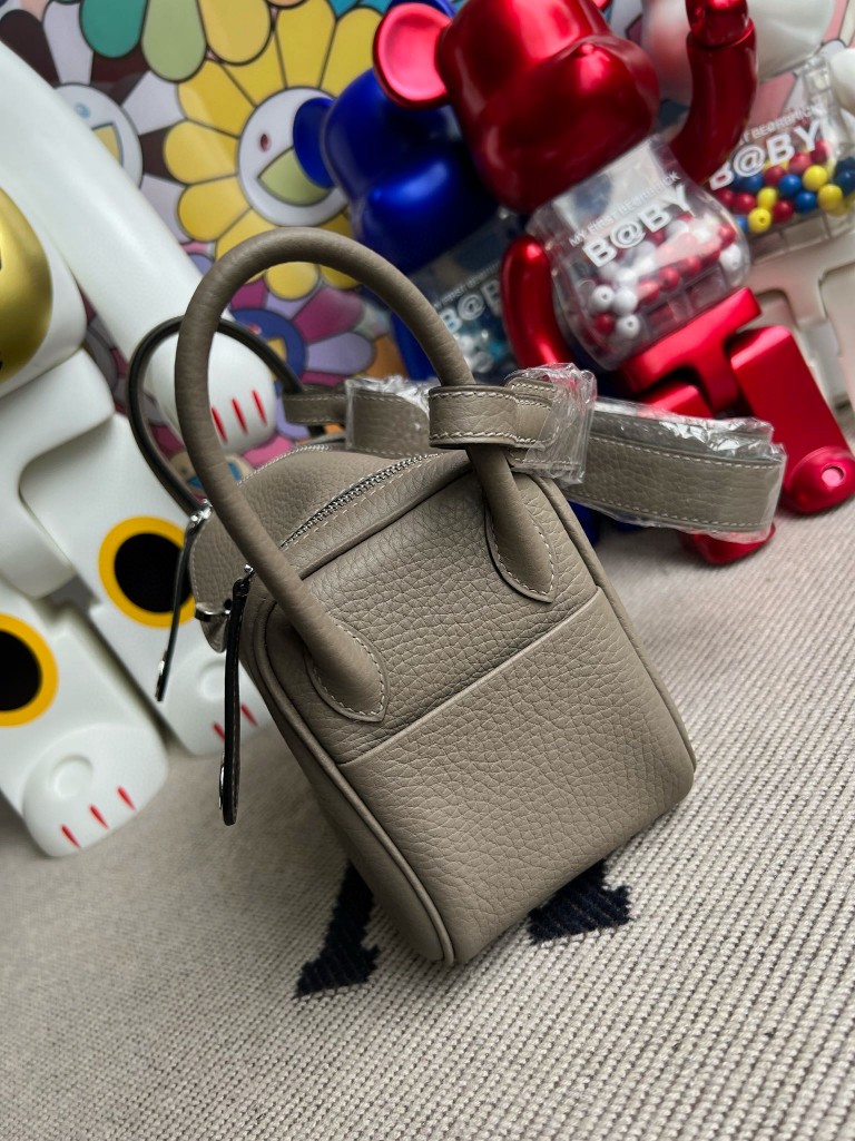 Mini lindy Taurillon Clemence M8 gris ashpite Silver Hardware 20cm Full Handmade