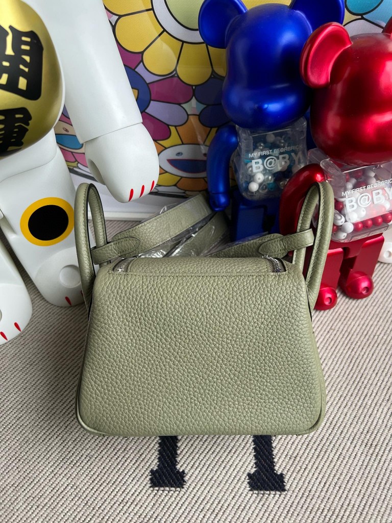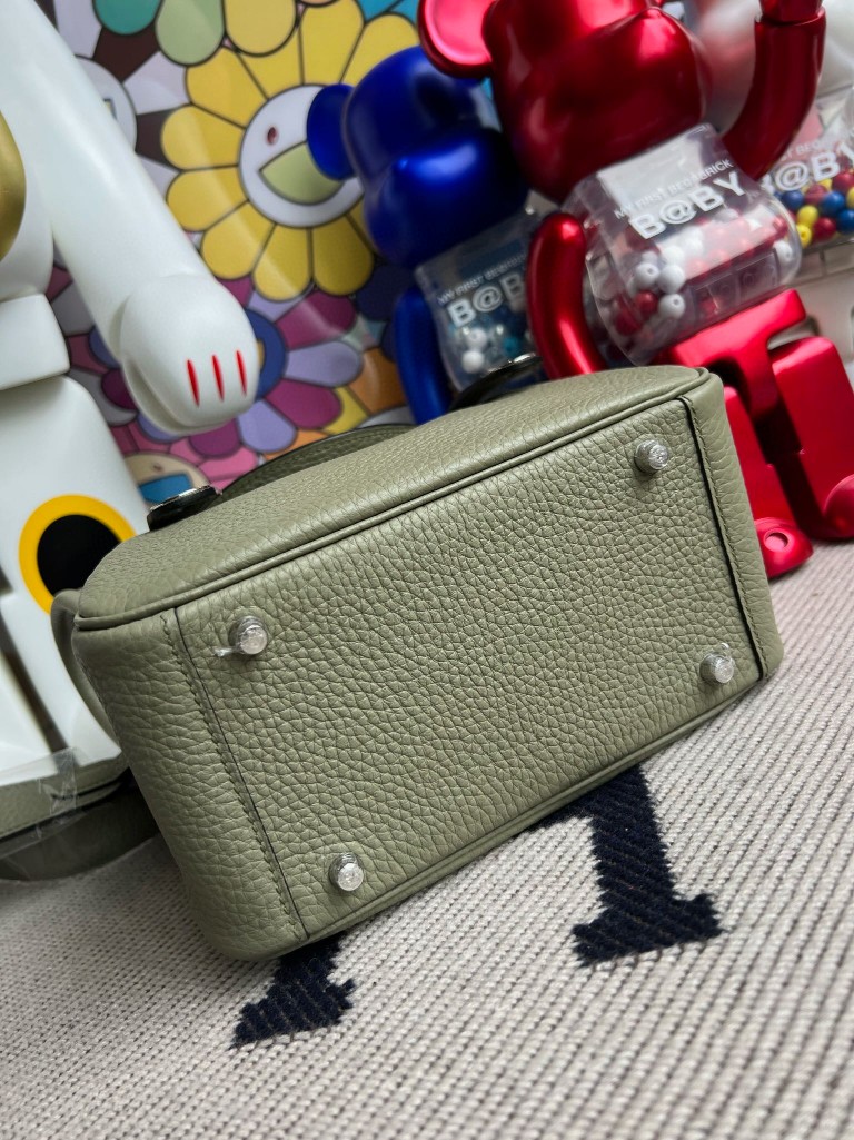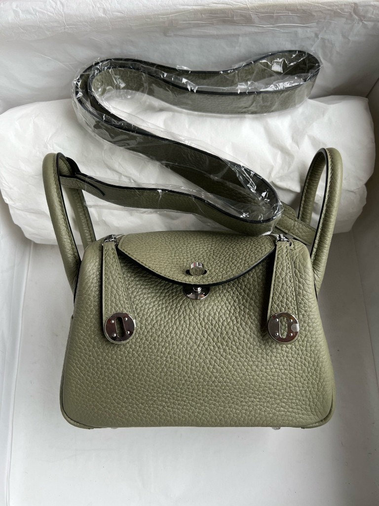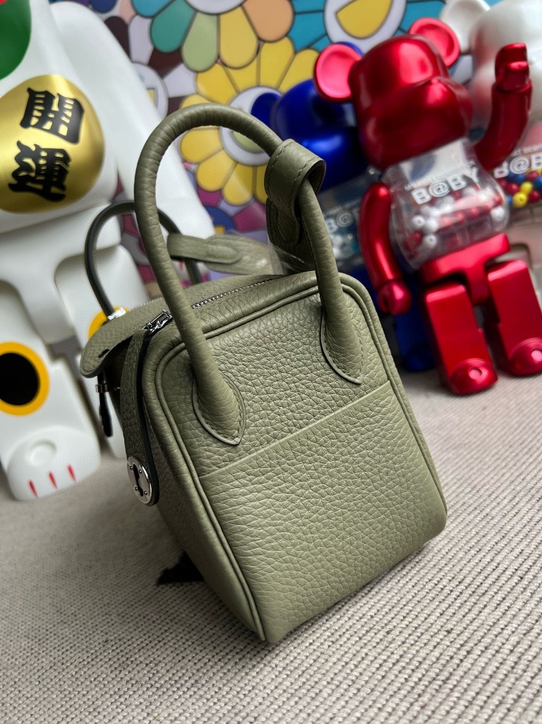 Mini lindy Taurillon Clemence Q1 dark green Silver Hardware 20cm Full Handmade