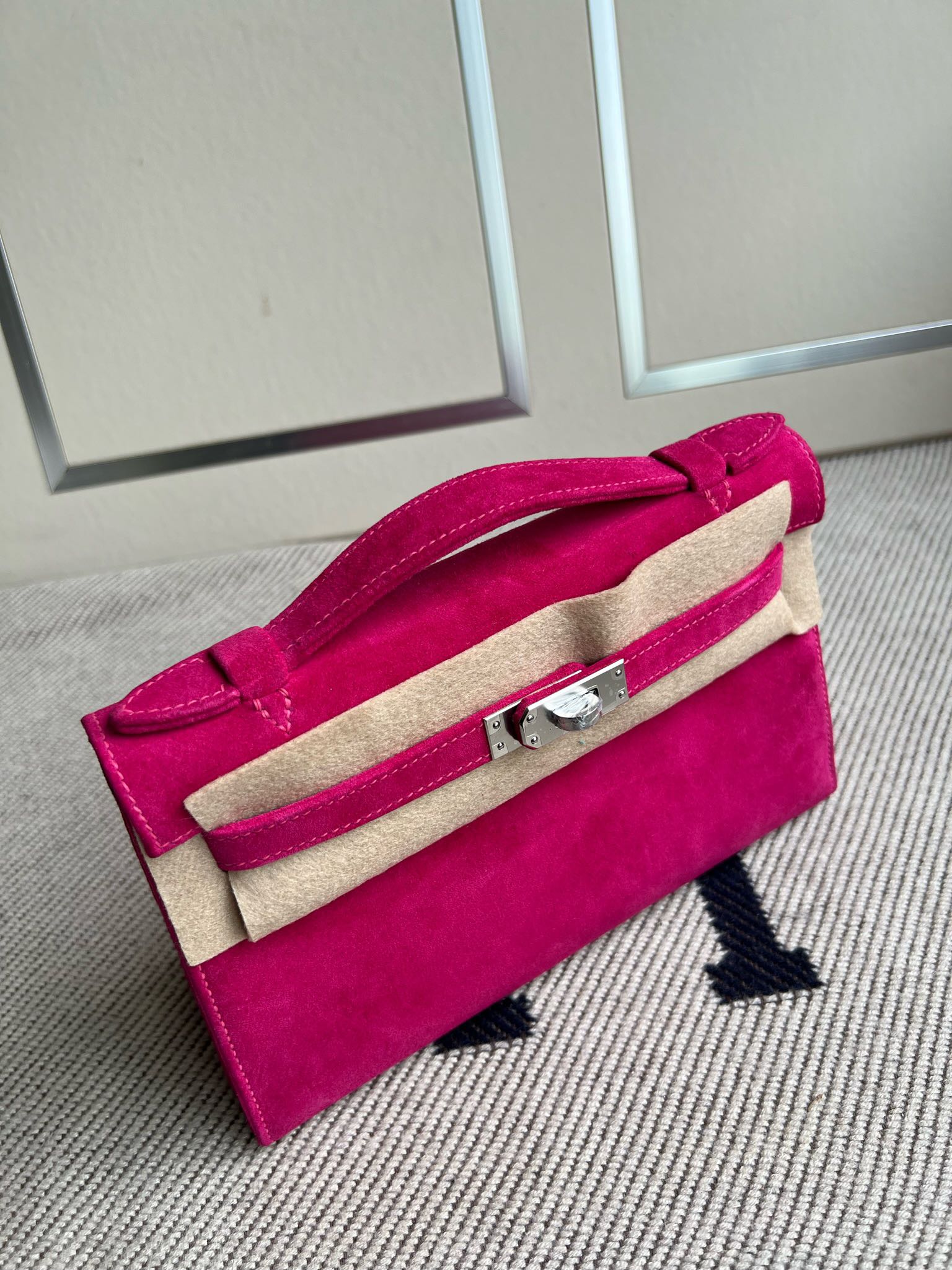 Uncle Bench Hermes Mini pochette chamois Rose Pink Silver Hardware PHW 22cm Full Handmade