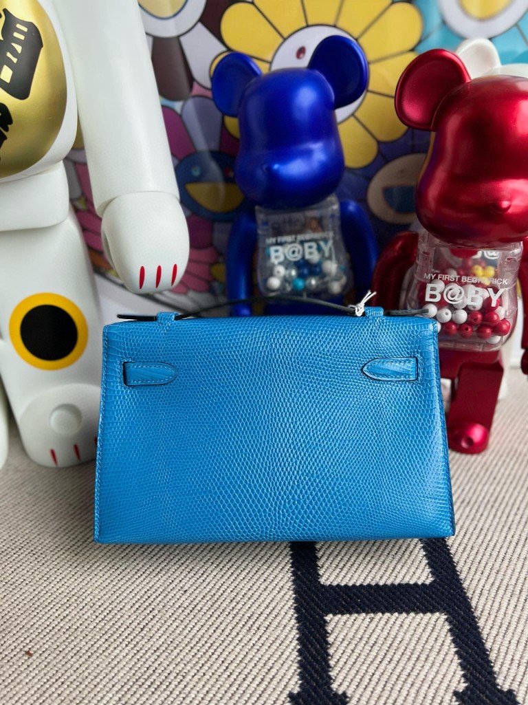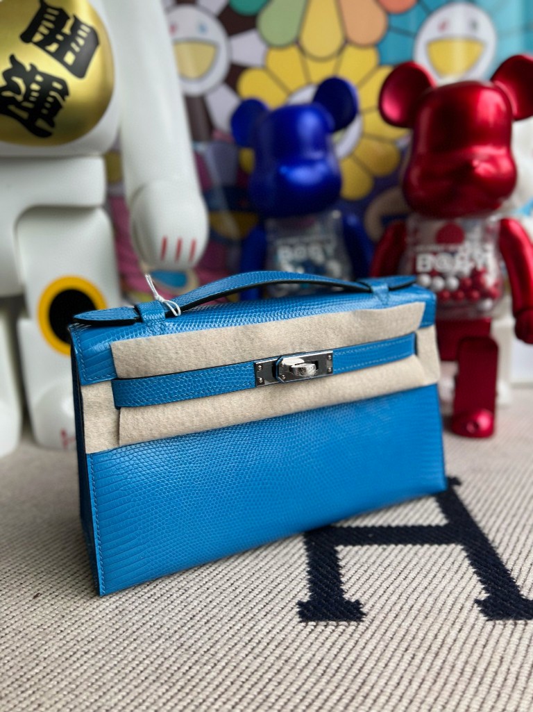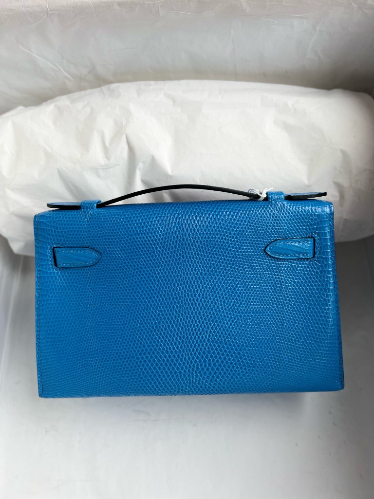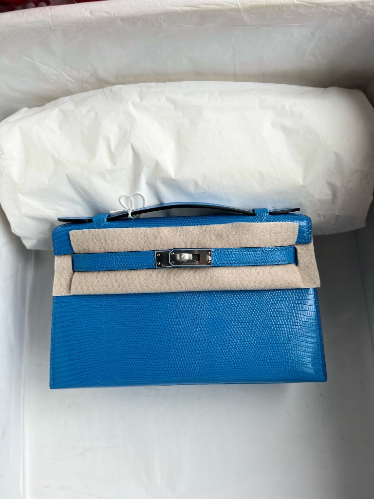 Mini pochette Lizard shiny 7Q mykonos blue Silver Hardware 22cm Full Handmade