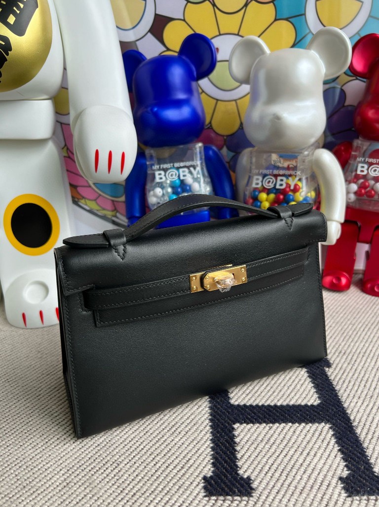 Uncle Bench Hermes Mini pochette Swift ck89 Noir Gold Hardware 22cm Full Handmade