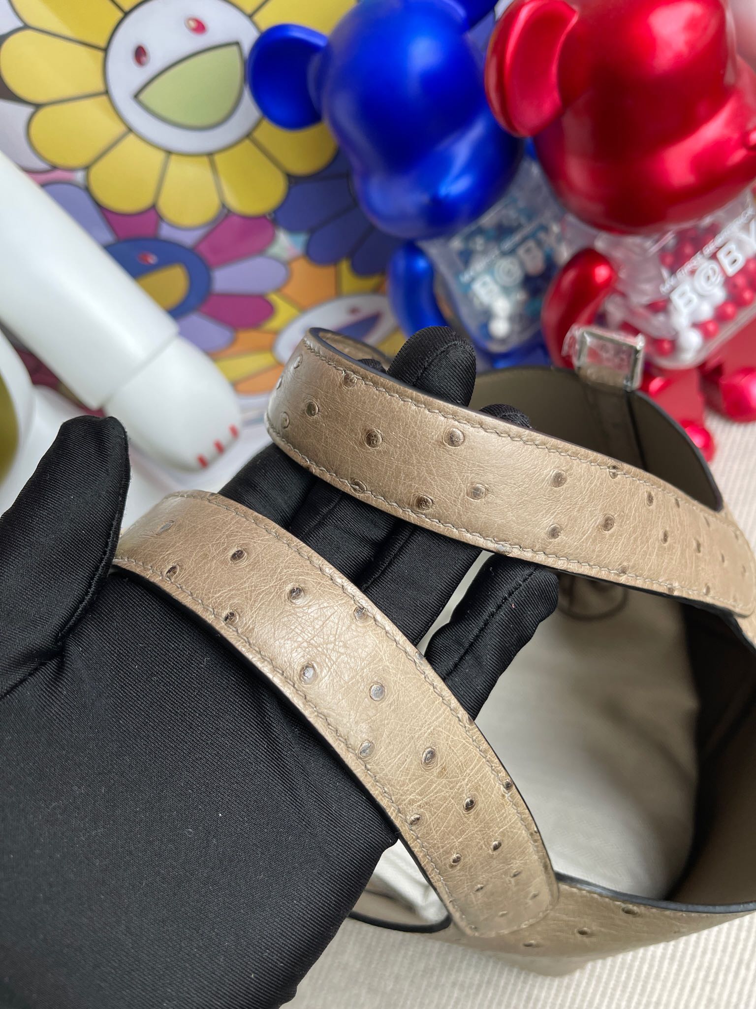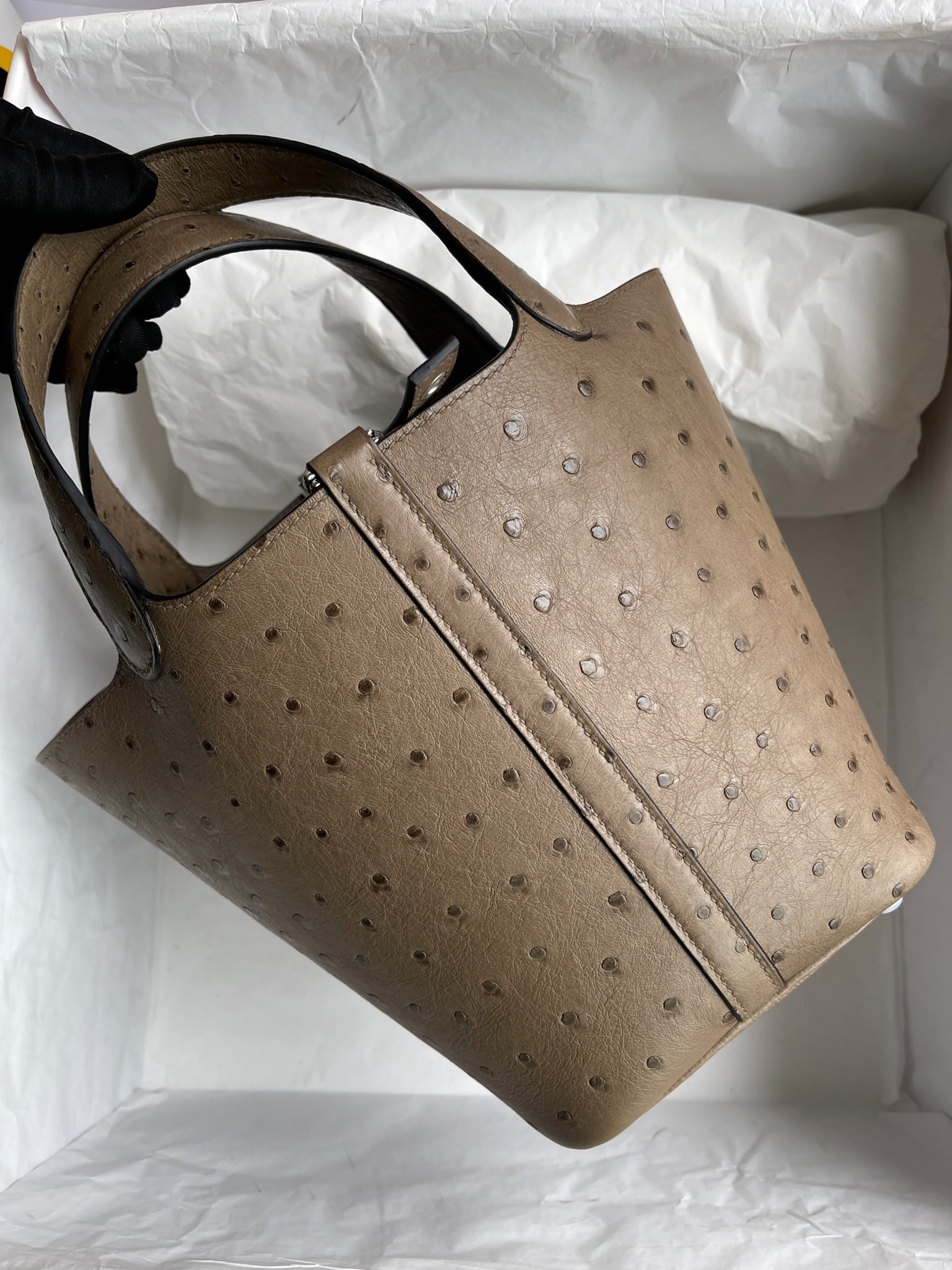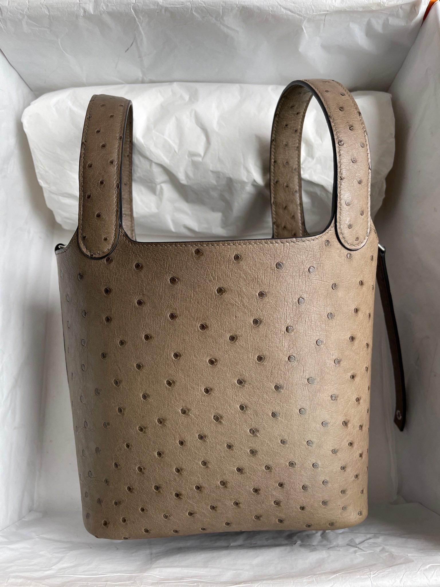 Picotin Ostrich kk Etoupe Silver Hardware 18cm Full Handmade