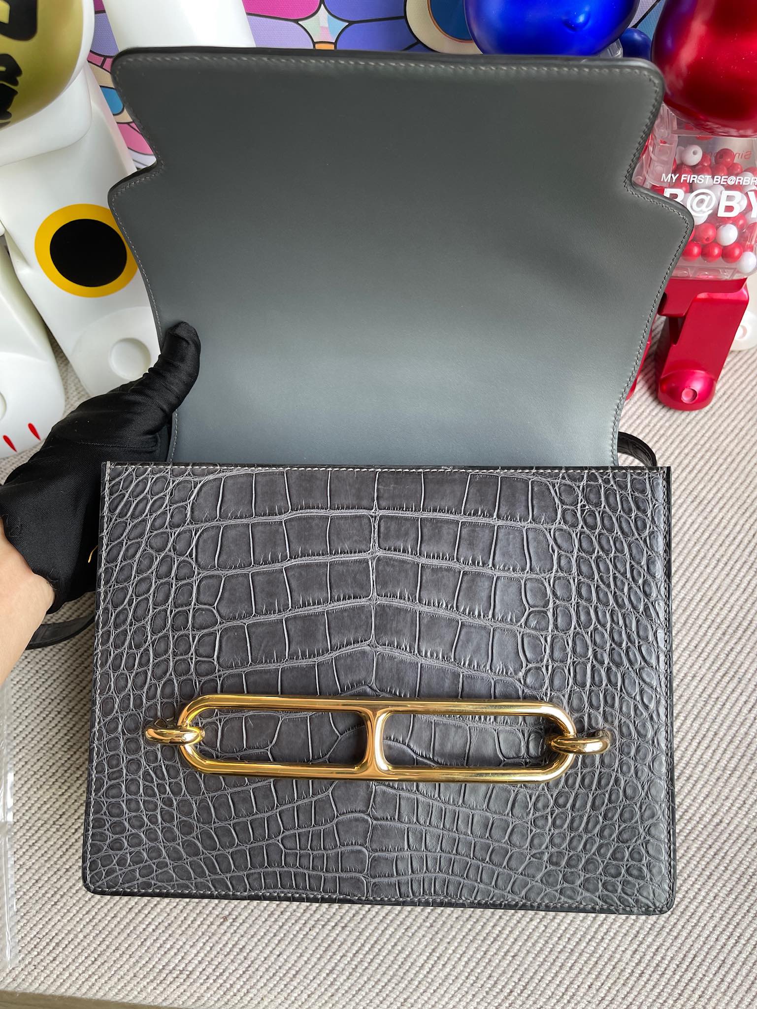 Uncle Bench Hermes Roulis 24cm alligator matt ck88 graphite Gold Hardware Full Handmade