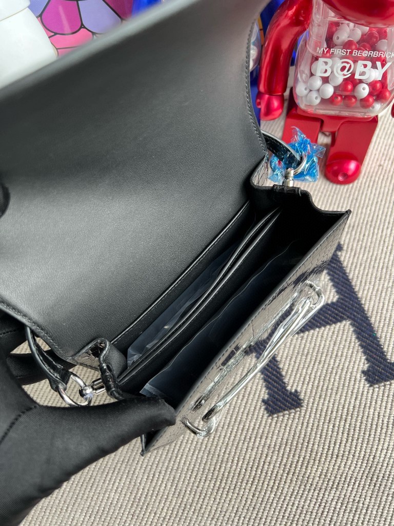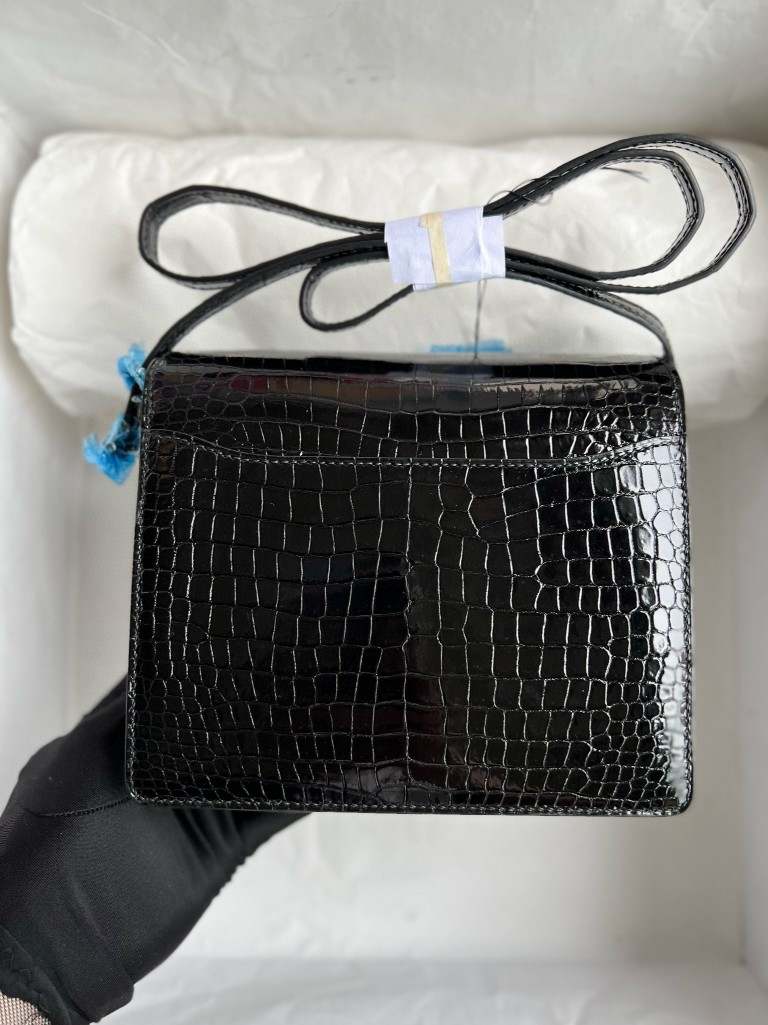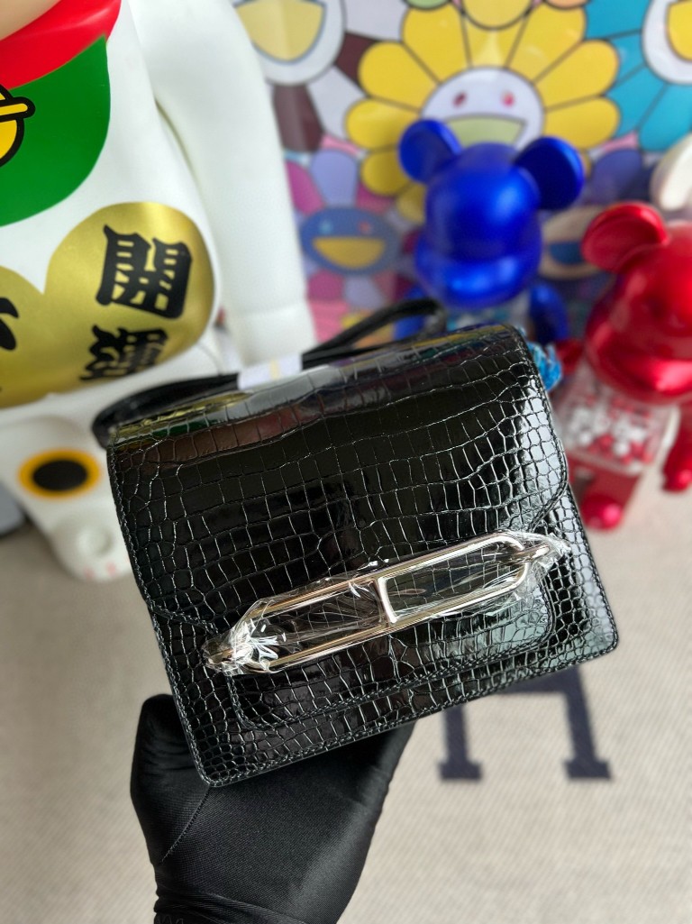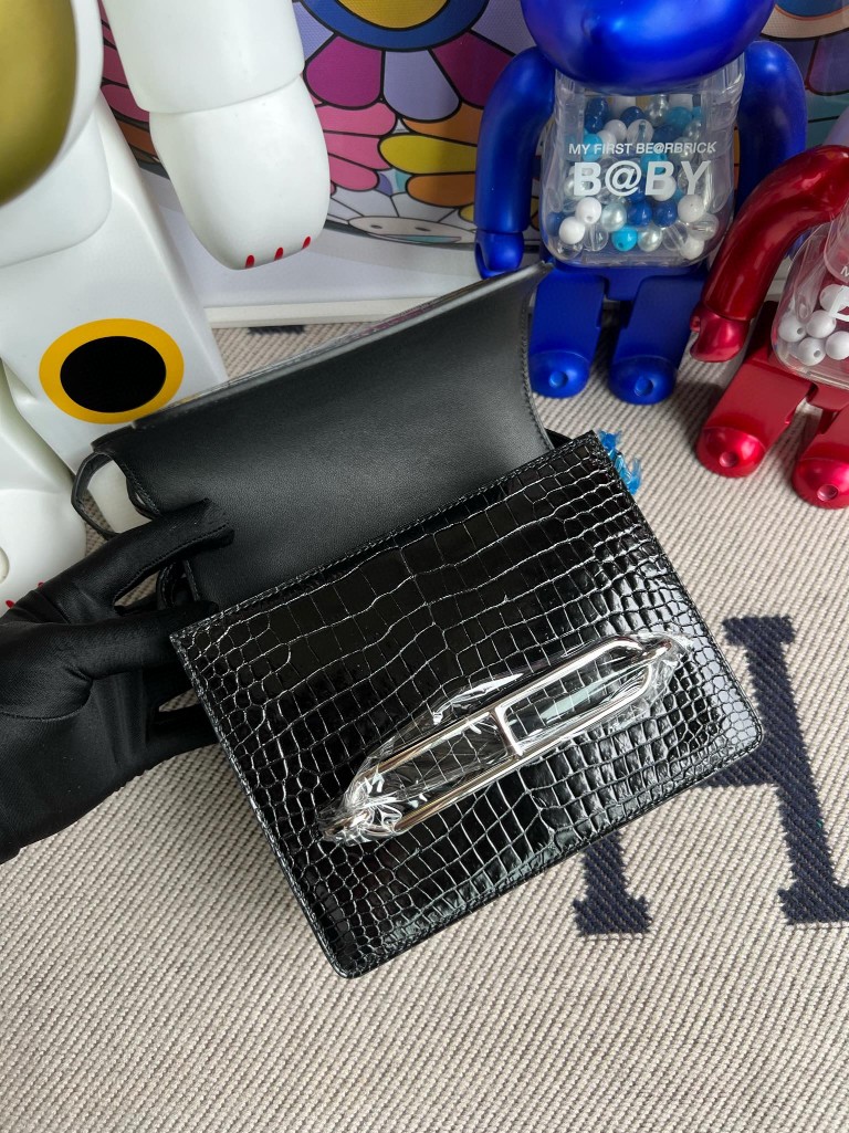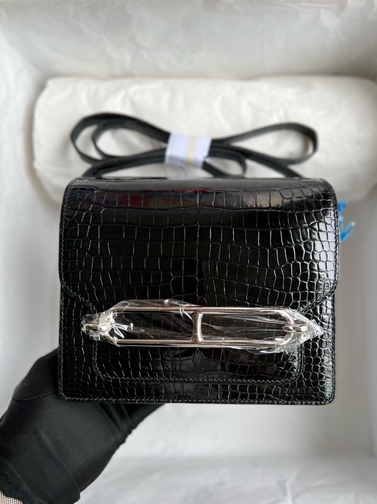 Uncle Bench Hermes Roulis Porosus shiny ck89 Noir Silver Hardware 18cm Full Handmade
